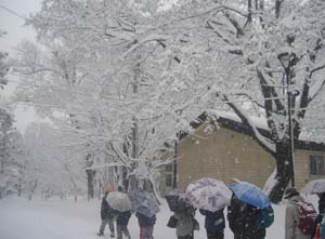 | 第5回目 北大構内 2009年2月16日(火)10:00〜12:00 ○天候:雪 ○参加者:14名 ○講 師:島田、村野 研修:鎌田、中嶋 |
