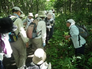 見られたもの:「植物」ミツバアケビ、ウワミズザクラ、オオハナウド。ピレネーフウロ、クゲヌマラン、タニウツギ、オドリコソウ、クルマバソウ、オククルマムグラ、マムシグサ、ツクバネソウ、ツルアジサイ、イワガラミ、コンロンソウ、マイヅルソウ、オニグルミ、ミヤマガマズミ、エゾノコリンゴ、ナツグミ、ヤエザクラ、ジャニンジン、ノビネチドリ、キジムシロ など 「その他」 エゾハルゼミ、エゾマイマイ エゾノコリンゴ |