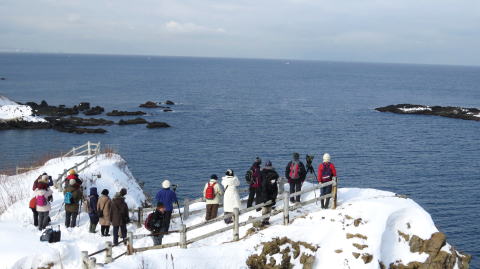 | 特別編 室蘭地球岬 2012年5月7日(月) 9:00〜17:30 ○天候:くもり時々雨 ○参加者:27名 ○講 師:島田、村野、鎌田 ○日 程 9:00 札幌駅発(貸切バス。高速道利用) 11:10 地球岬灯台駐車場 遊歩道を散策 14:40 地球岬駐車場出発 チャラツナイ展望台でバードウォッチング 15:00 室蘭発 17:15 札幌駅帰着 |