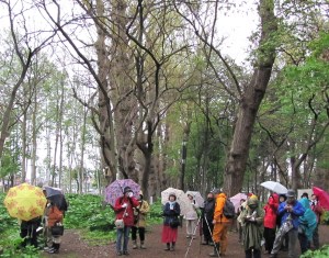 | 第2回目 屯田防風林 2012年5月15日(火) 10:00〜12:00 ○天候:雨 ○参加者:17名 ○講 師:島田、村野、鎌田 |