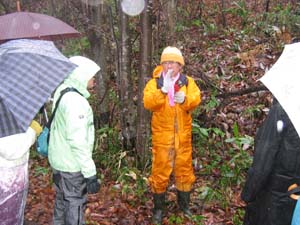 ※9月19日の観察会で見られたもの 天候:晴れ 植物:オオバボダイジュ、サワシバ、ミヤマセンキュウ、イヌヨモギ、ヤブマメ、ミヤマガマズミ、ヤマブドウ、ヤマウルシ、アクシバ、ゲンノショウコ、ダイモンジソウ、サラシナショウマ、イケマ など 野鳥:アカゲラ、コゲラ、カワガラス、ヤマガラ、ゴジュウカラ など その他:エゾリス、シマヘビ幼陀死体、スズメバチの巣、アリジゴク など |
