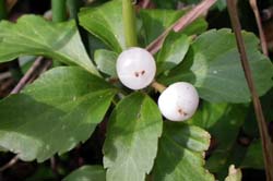 ※11月25日の観察会で見られたもの 天候:晴 植物:ミヤマガマズミ(実)、チョウセンゴミシ(実)、オオバボダイジュ(実)、ミズナラ、アカナラ、ヤマブドウ(実)、コクワ(サルナシ、実)、ナツハゼ(実)、エゾニワトコ、クリ、ヤマモミジ、イタヤカエデ など 野鳥:アカゲラ、コゲラ、ヒヨドリ、ヤマガラ、ハシブトガラ、シジュウカラ、ヒガラ、ゴジュウカラ、シメ など その他:つらら、霜柱 ナツハゼの実 |