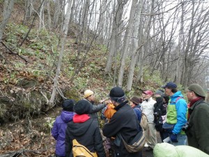 ※4月25日の観察会で見られたもの 植物:シラカンバ、ノリウツギ、ツノハシバミ、オニグルミ、ヤドリギ、オオツルツゲ、ショウジョウスゲ、アキタブキ(フキノトウ)、フデリンドウ(芽だし)、ホオノキ など 野鳥:マガモ、カワガラス、ヤマセミ、アカゲラ、ヒヨドリ、コゲラ、キセキレイ、ハクセキレイ、キクイタダキ、ハシブトガラ、シジュウカラ、ゴジュウカラ、ヒガラ、シメ など その他:エゾリス、ウスタビガの繭、虫こぶ など |